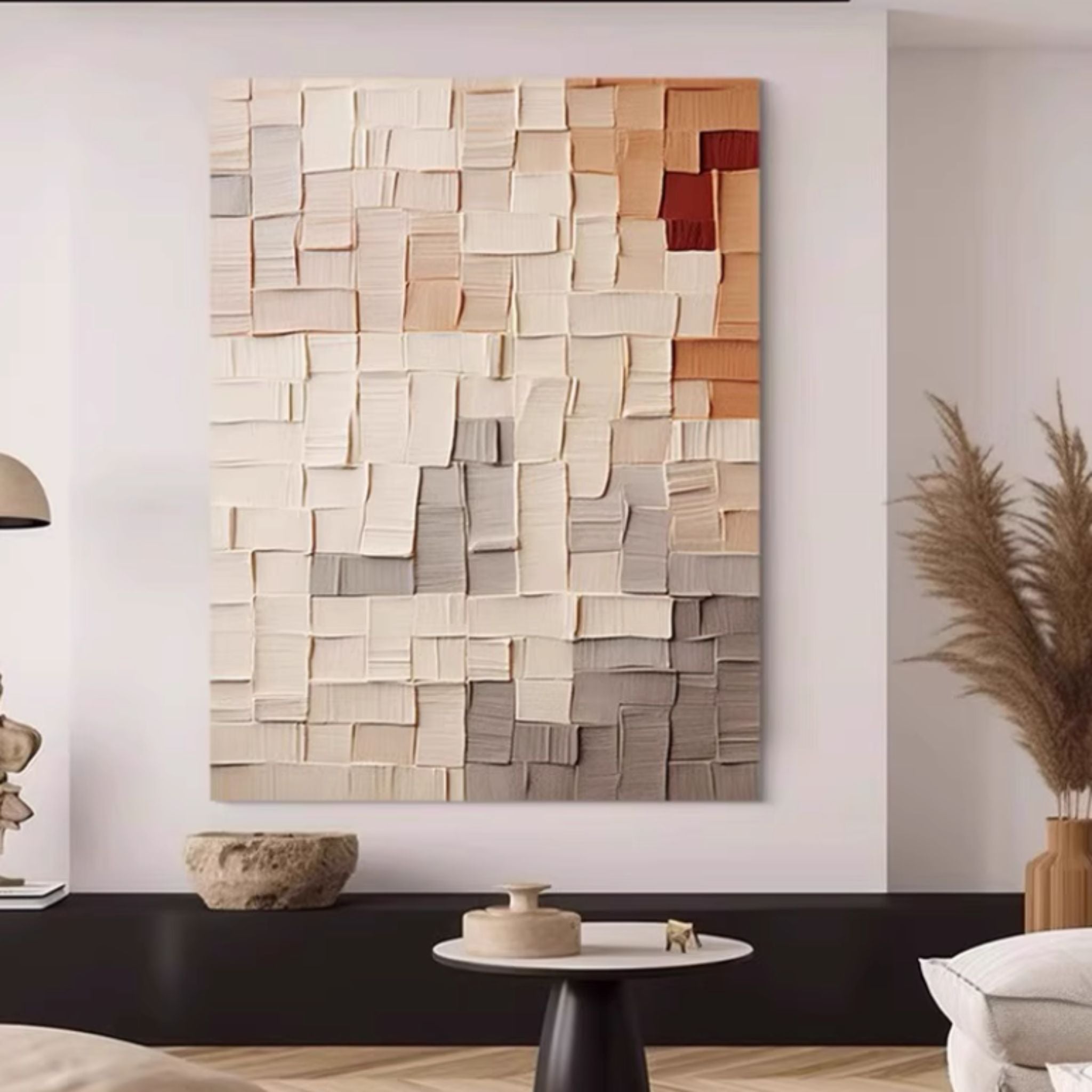 Hand-painted 3D Textured Impasto Geometric Wall Art | Mixed Neutral Tones & Accent | Modern Abstract Blocks