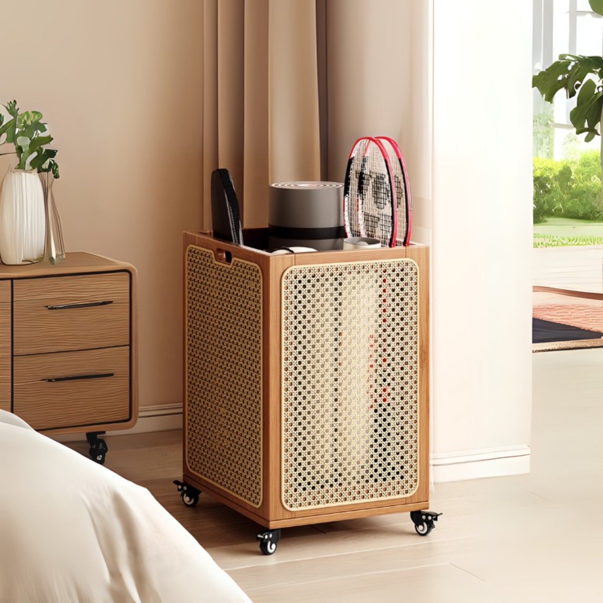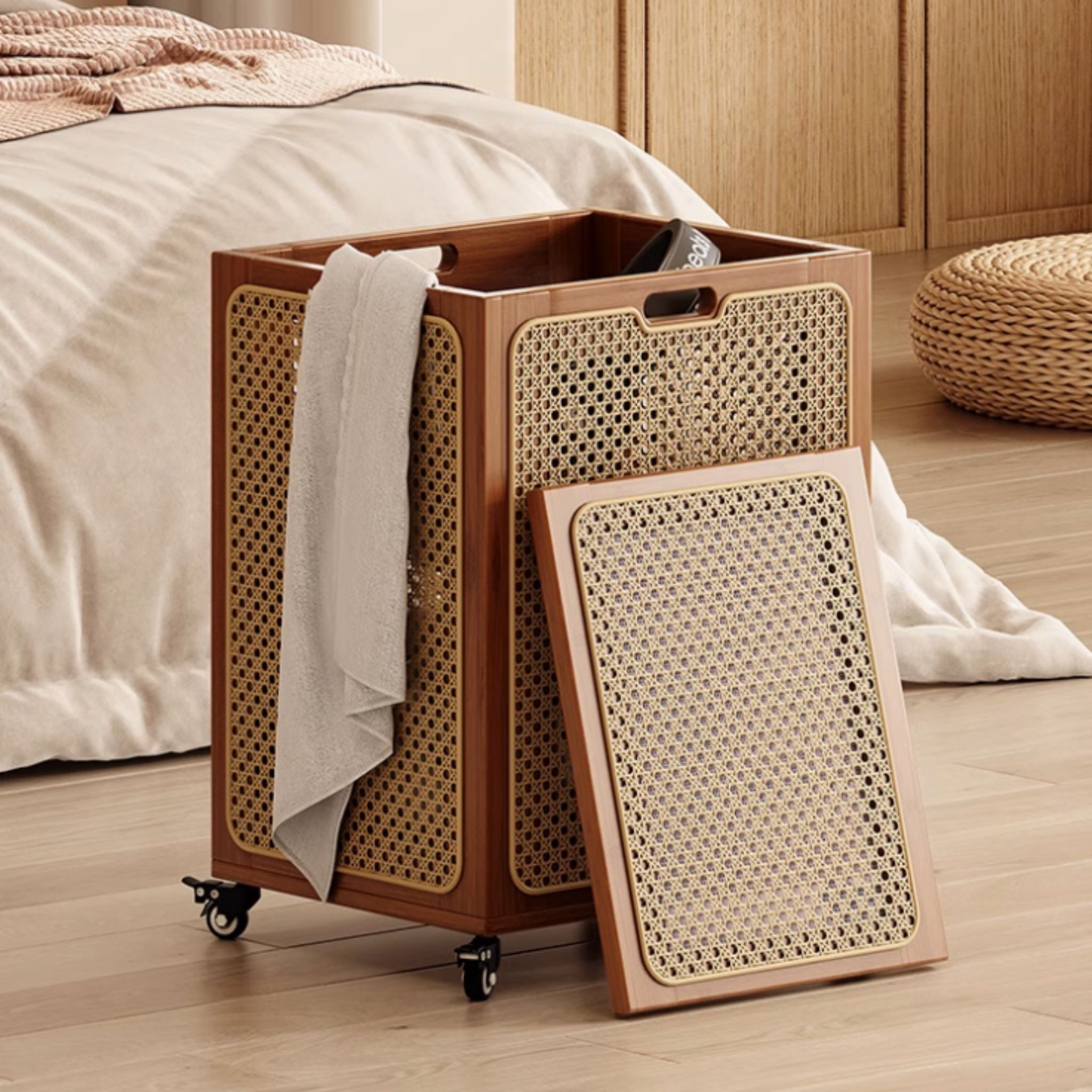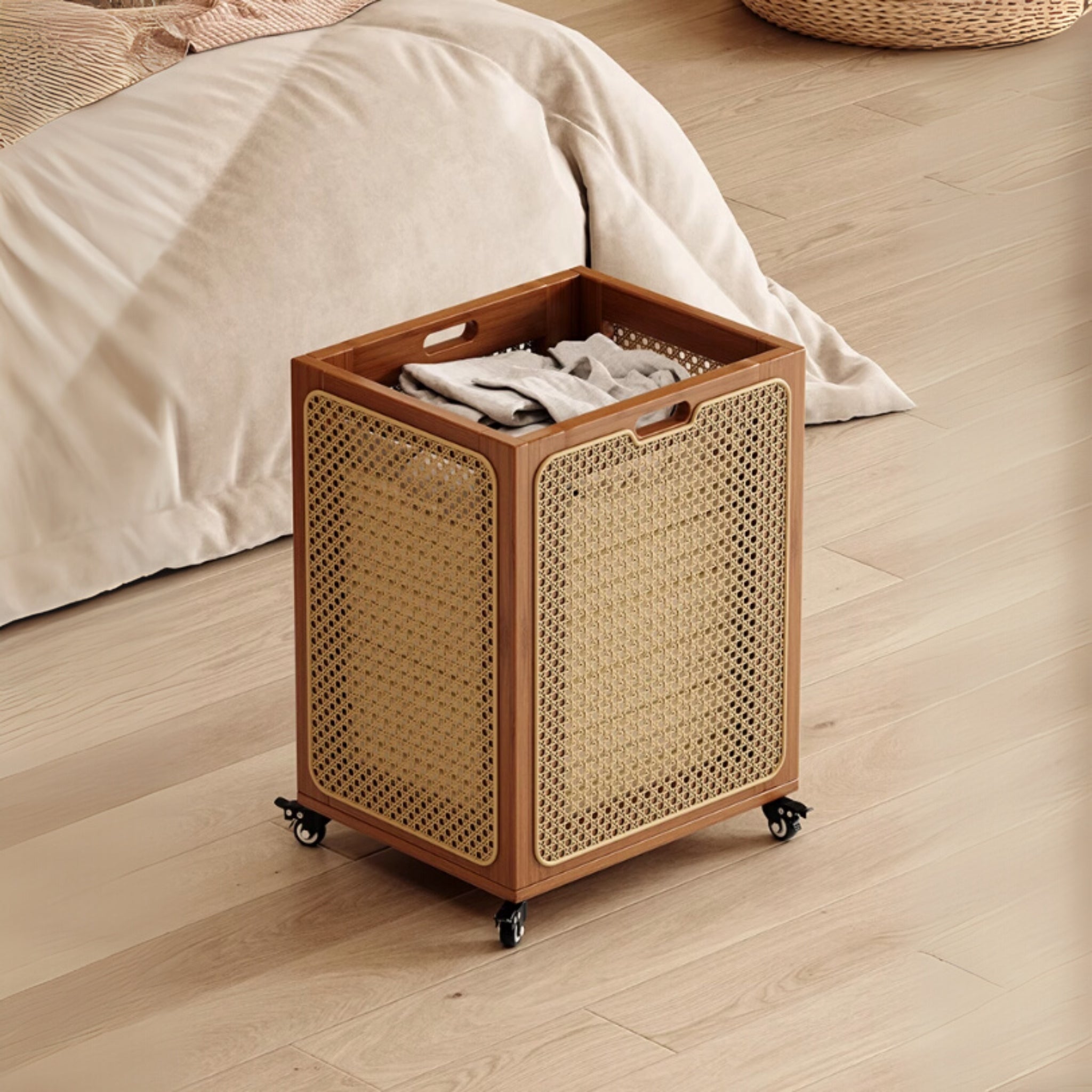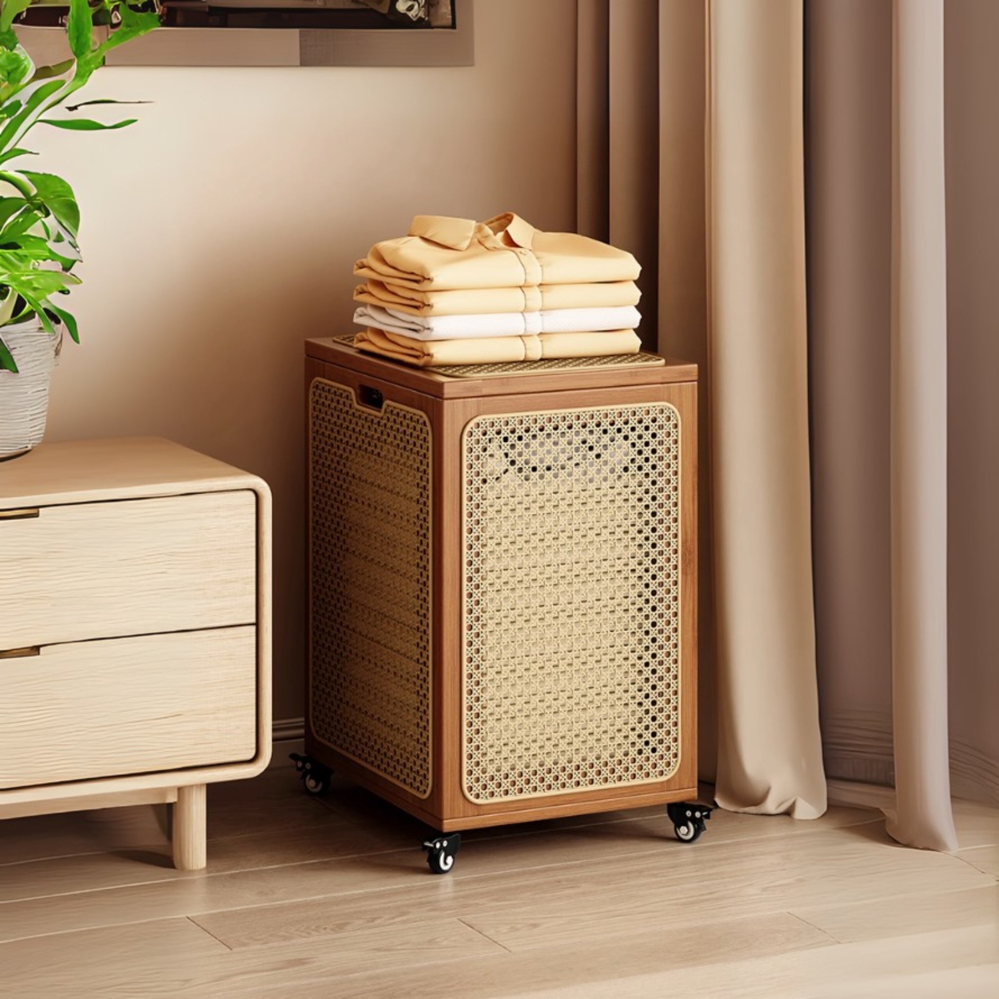 Woven Rattan Rolling Hamper | Natural Wicker with Lid | Rustic & Functional Laundry Storage