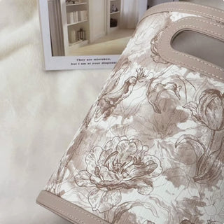Elegant Leather Cream Tan Floral Patterned Storage Bin