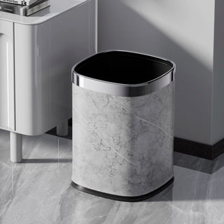 Elegant Stone Texture Round Trash Can | Marble Finish with Silver Trim | Contemporary Waste Bin for Home & Office