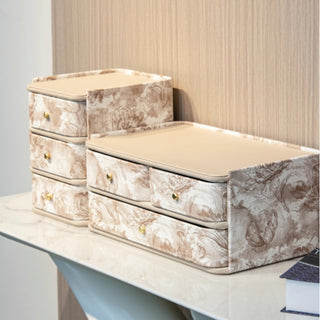 Chic Cream Leather Makeup Organizer | Multi-Tier Cosmetic Storage Box with Drawers