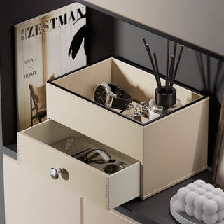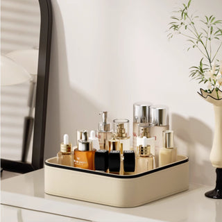 Leather Skincare & Cosmetic Organizer Tray | Elegant White / Beige & Black Trim Organizer