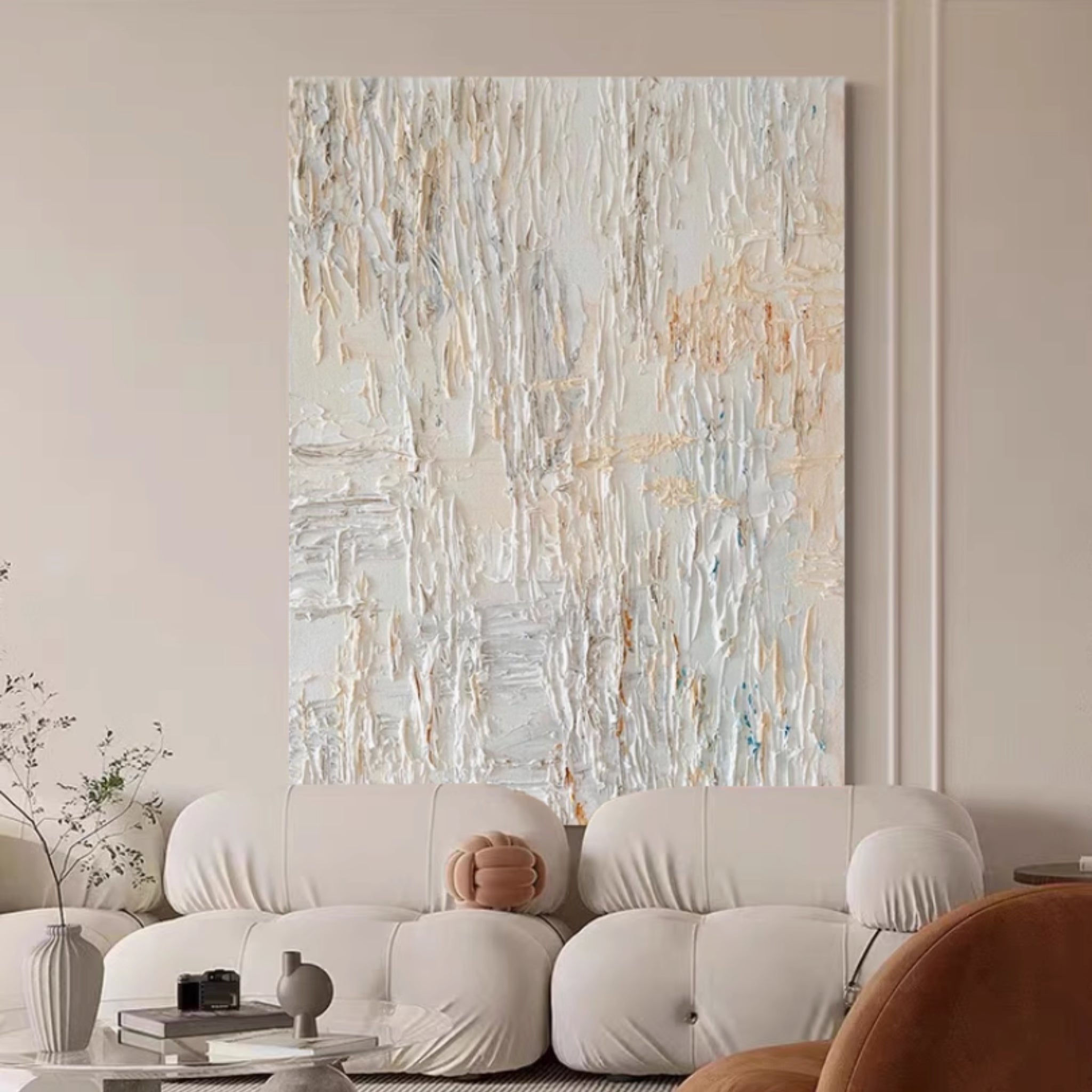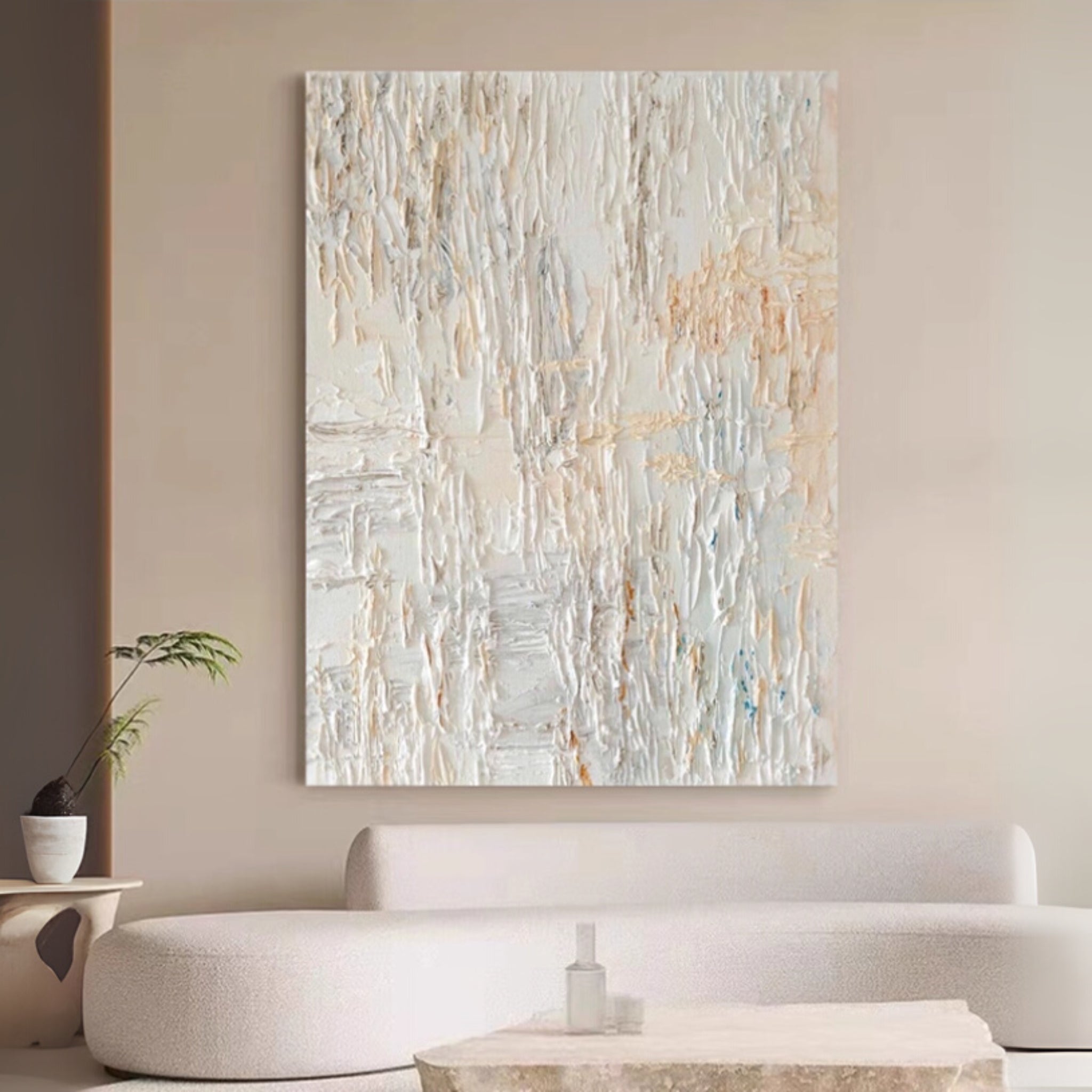 Infuse your minimalist space with rich texture and subtle artistry using our Hand-Painted Neutral Tones Impasto Style Painting. This captivating abstract canvas is a testament to meticulous craftsmanship, featuring a heavily textured impasto effect created with thick, visible brushstrokes. Rendered in a soothing palette of neutral tones, it offers a sophisticated visual depth that changes with the light. Perfect for modern, minimalist, and Scandinavian interiors, this handcrafted painting serves as a unique focal point that adds warmth, character, and artistic intrigue without overwhelming your decor.
