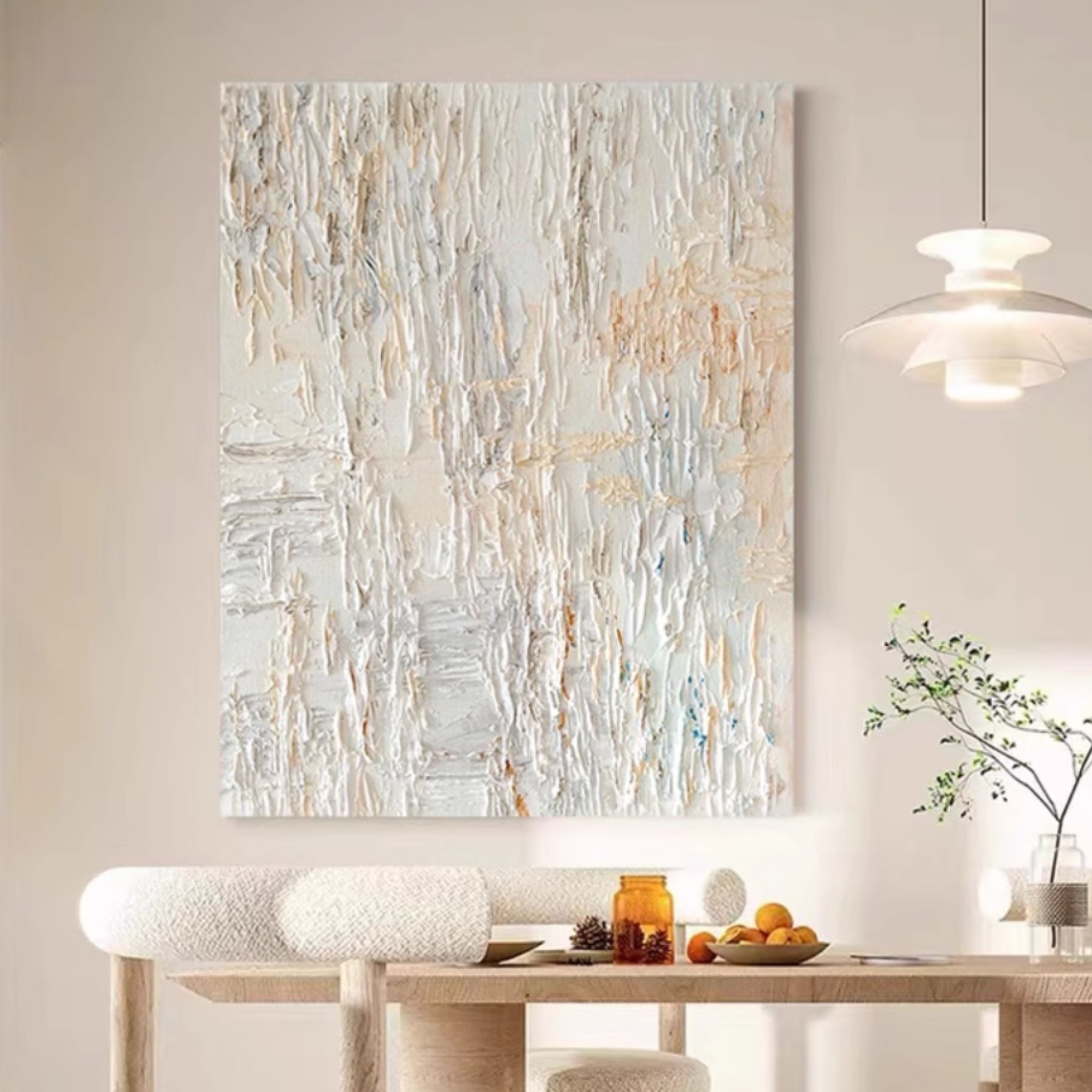 • Style: Hand-painted, Impasto, Textured, Abstract, Minimalist, Contemporary, Modern, Scandinavian