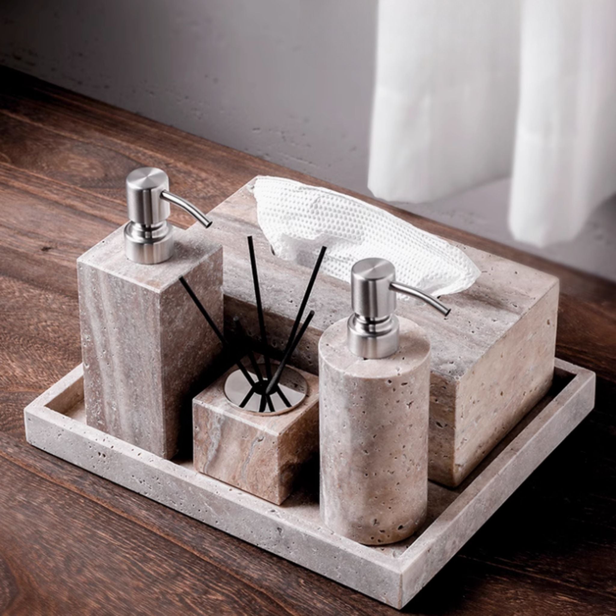 Elevate your bathroom or vanity space with the timeless elegance of natural stone. Our Luxury Natural Stone Bathroom Accessory Set transforms everyday essentials into objets d'art. Crafted from genuine, solid marble with a beautiful natural beige finish, this collection brings spa-like luxury and sophisticated organization to your countertop.