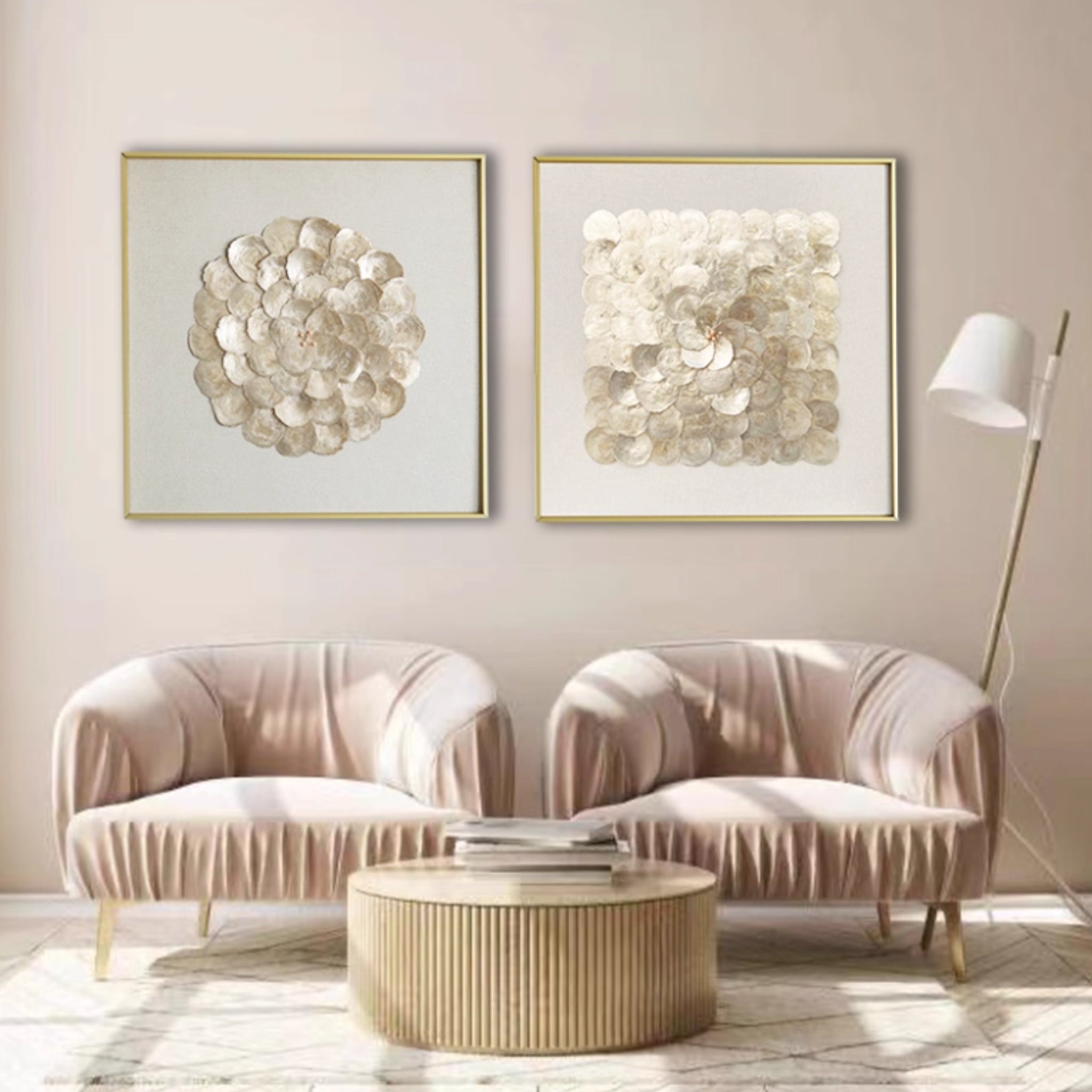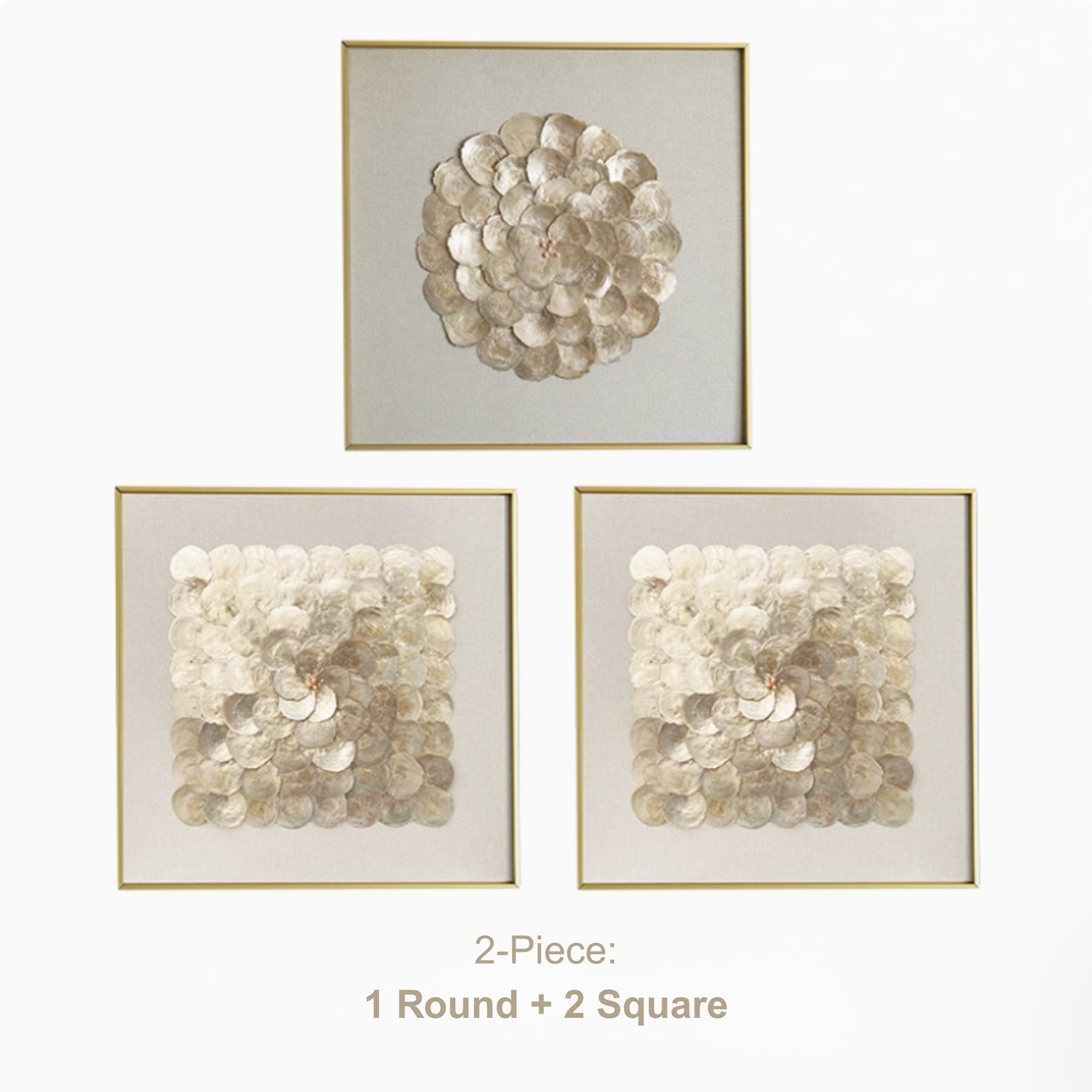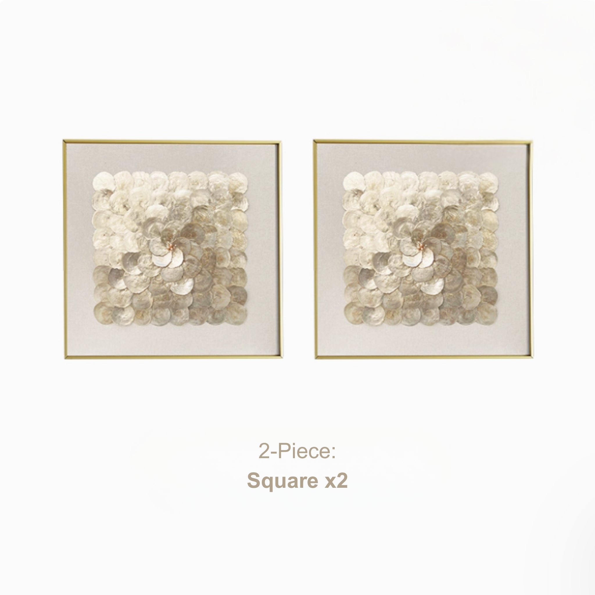 Adorn your walls with the serene beauty and intricate artistry of our Luxury 3D Handcrafted Natural Shell Mosaic Art. This exquisite set features two elegant square framed pieces, each meticulously crafted with genuine natural shells to create unique, dimensional mosaic patterns. Evoking the tranquil allure of the coast, the delicate textures and organic forms shimmer subtly, bringing a sophisticated, coastal-inspired elegance to your home. Perfect for a living room, bedroom, or entryway, this art set is a beautiful celebration of nature's artistry and skilled craftsmanship, offering a unique focal point that elevates any interior.