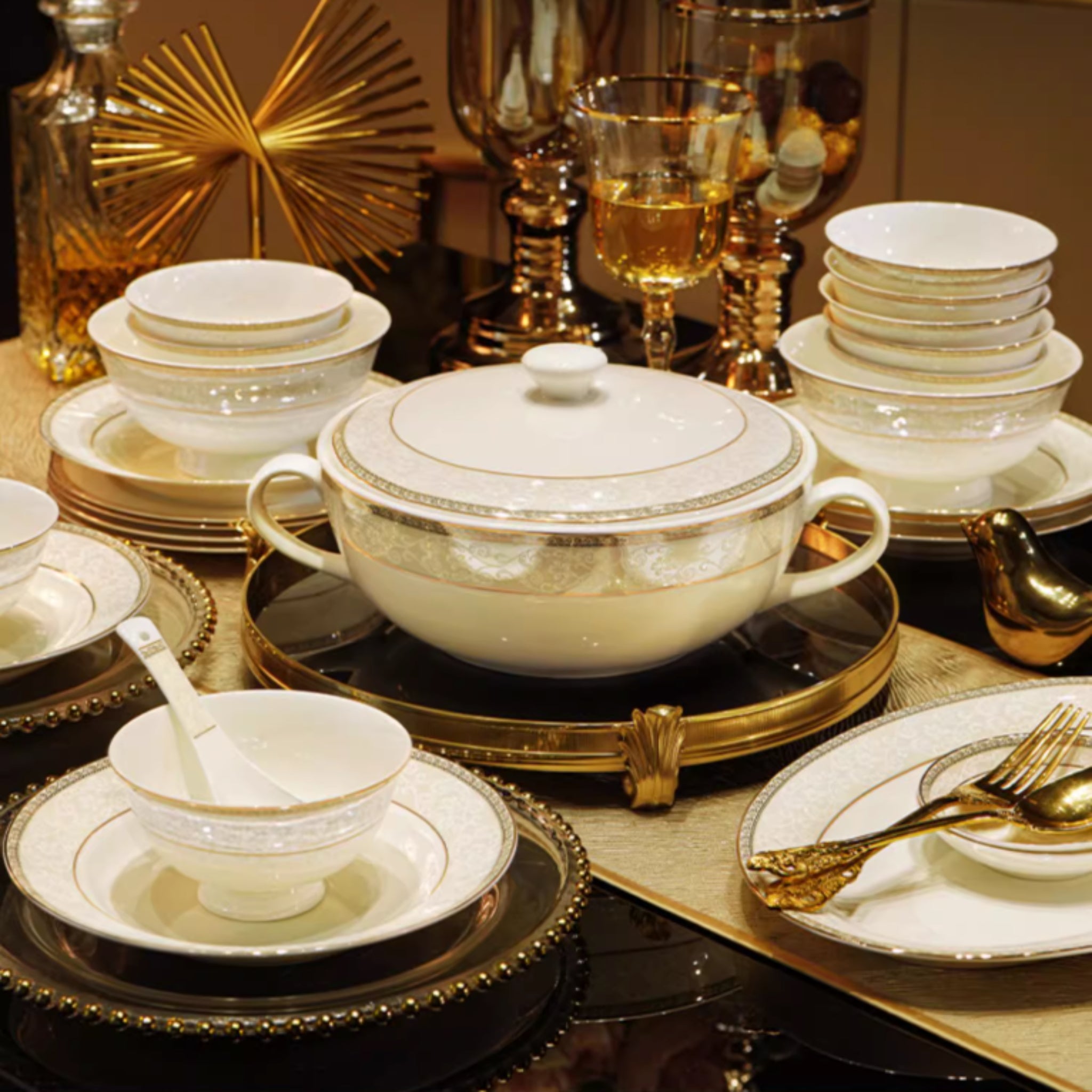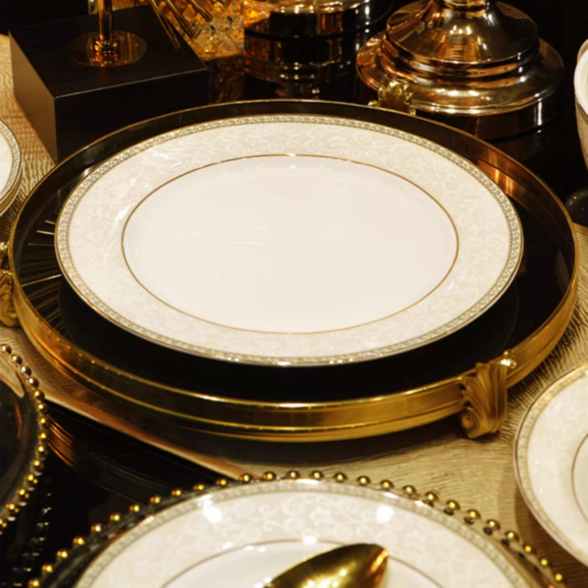 Opulent Gold Rimmed Dinnerware Set | Royal Style Tableware for Wedding & Special Occasion Dinnerware