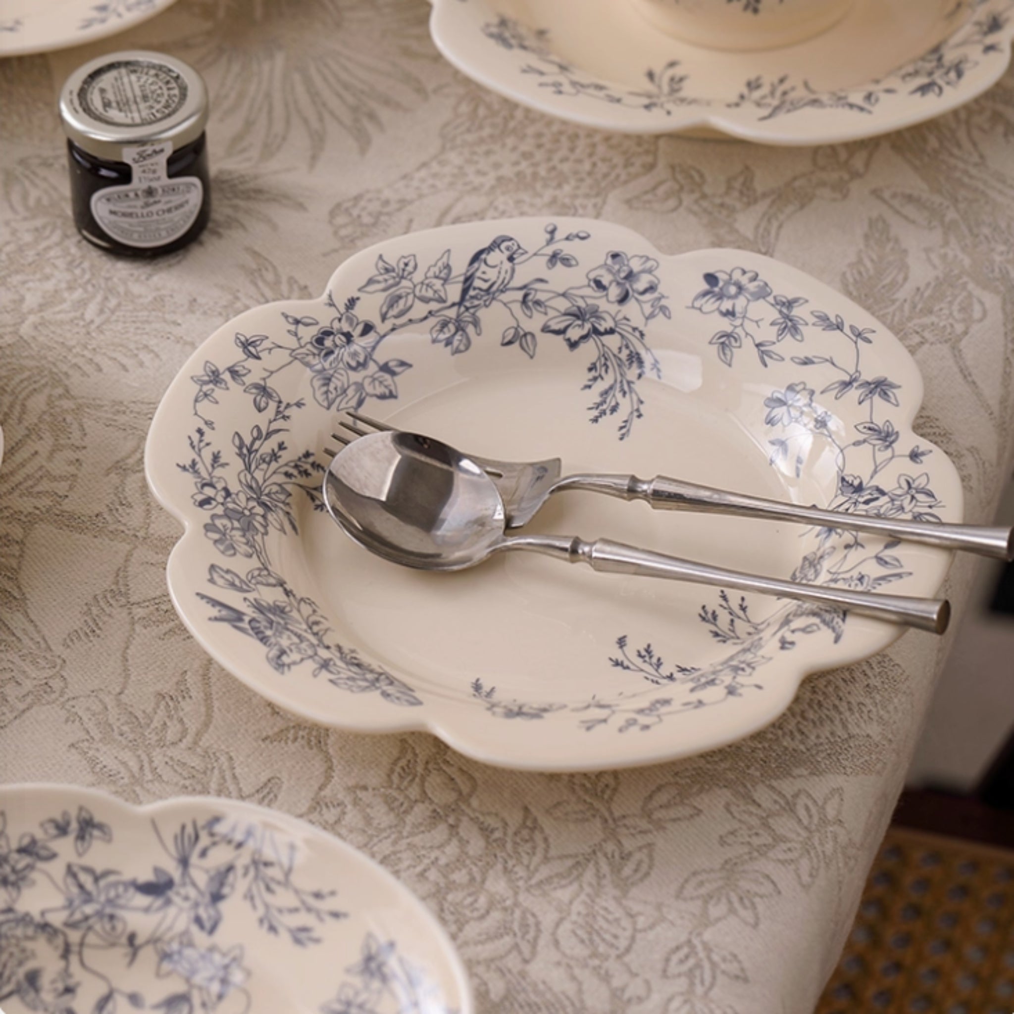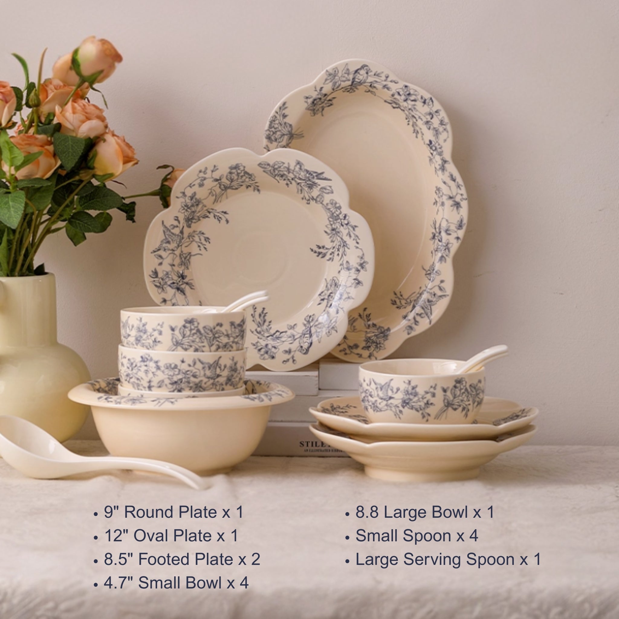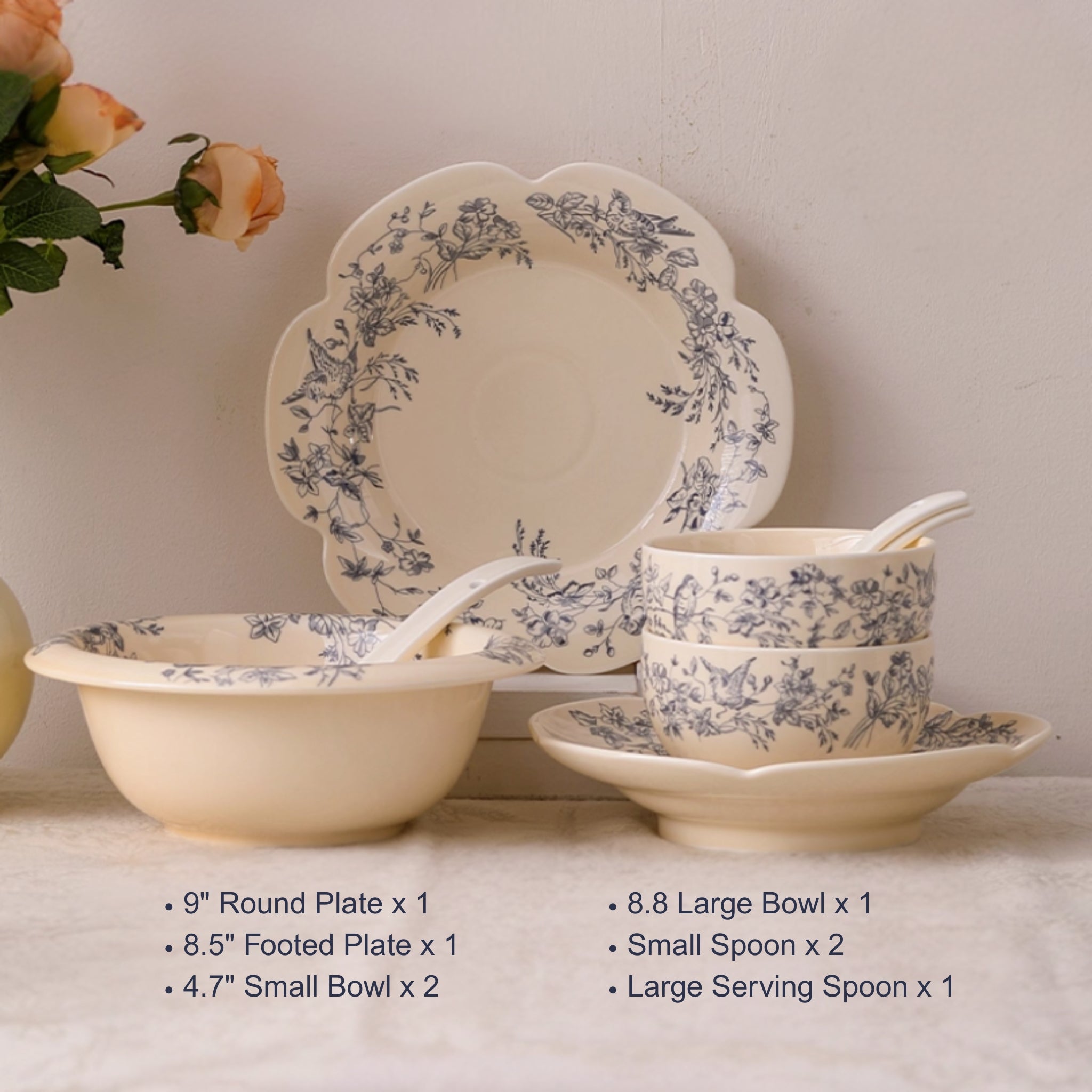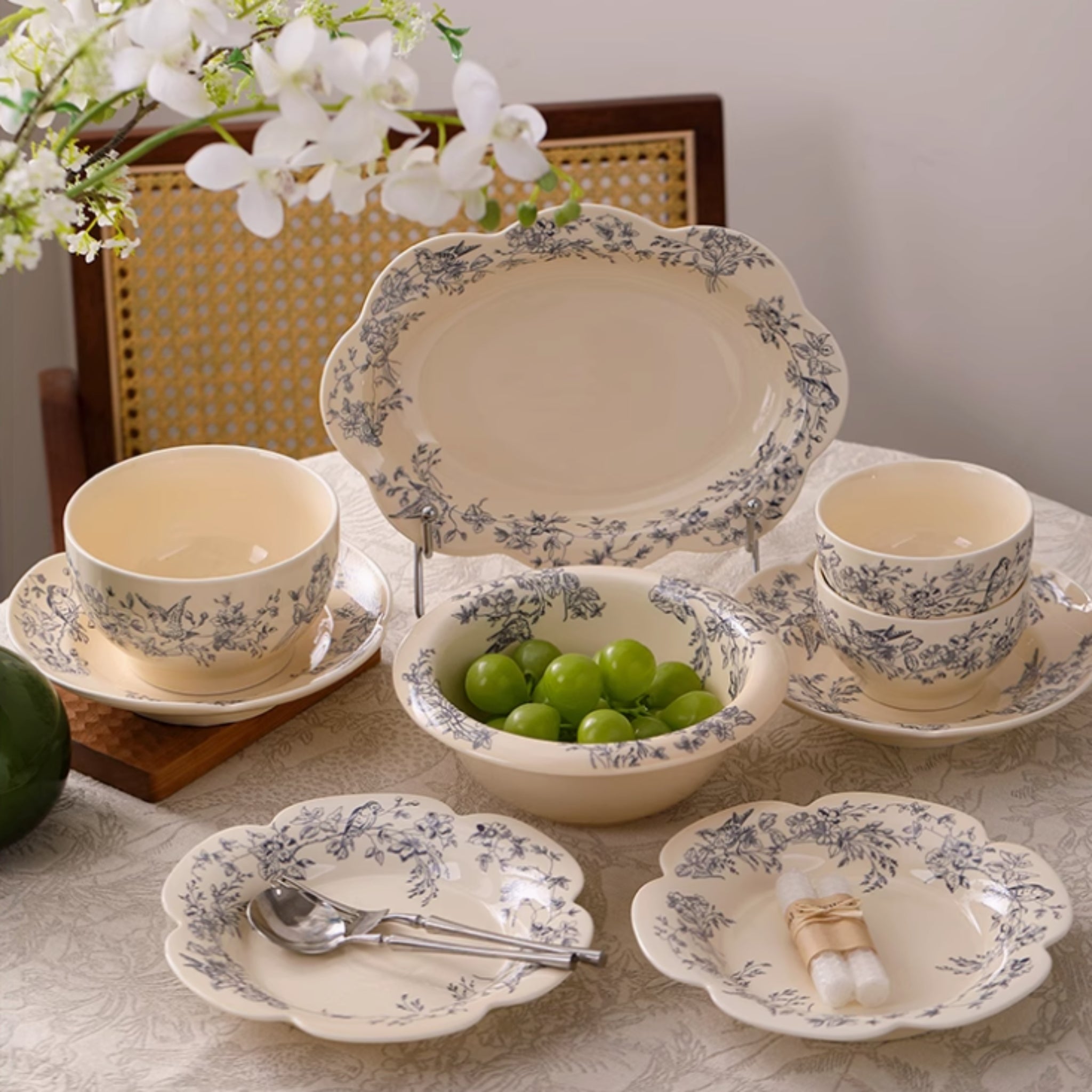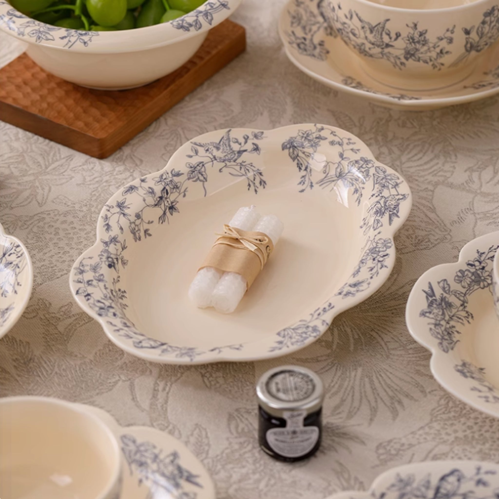 Shabby Chic Farmhouse Ceramic Blue Floral Tea & Dining Set | Scalloped Edge