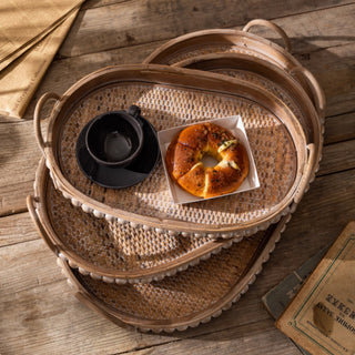 Handwoven Nesting Oval Woven Trays | Natural Rattan awith Handles | Versatile Rustic Serving