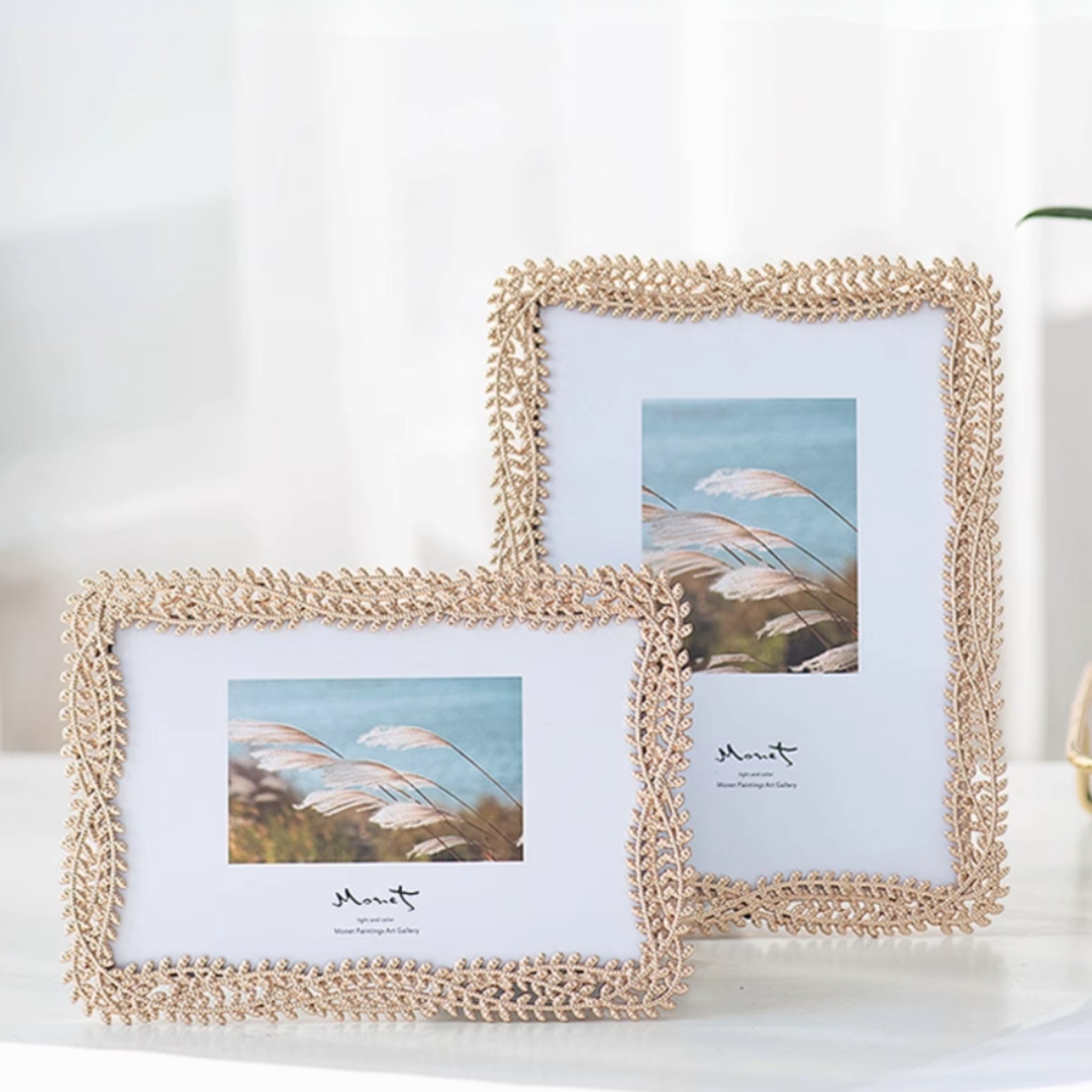 Frame your treasured moments in opulent vintage charm with our Ornate Champagne Gold Filigree Photo Frame. This luxurious frame features an intricately designed, filigree-inspired border in a rich champagne gold finish, evoking the grandeur of classic eras. Its detailed texture and antique-inspired silhouette make it a stunning decorative piece even before a photo is added, exuding an aura of timeless beauty and sophistication. Ideal for desktop display, this frame instantly elevates any dresser, desk, or side table, adding a touch of regal elegance to your home decor.